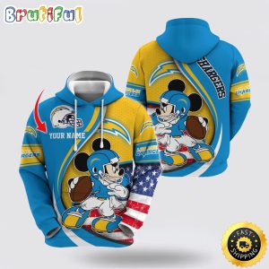 Personalized NFL Los Angeles Chargers Hoodie Mickey Mouse Flower 3D Print Hoodie