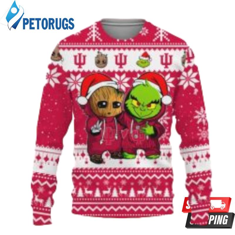 Indiana Hoosiers Baby Groot And Grinch Ugly Christmas Sweaters