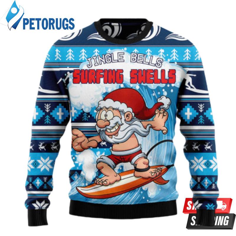 Jingle Bells Surfing Swells HZ92303 Ugly Christmas Sweater unisex womens & mens, couples matching, friends, funny family sweater gifts (plus size available) Ugly Christmas Sweaters