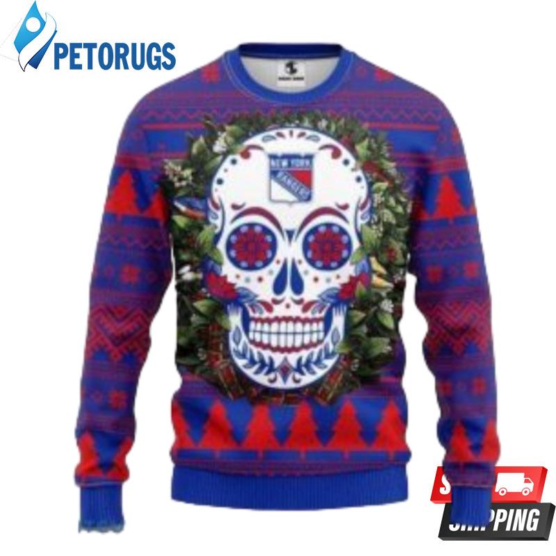 Nhl New York Rangers Skull Flower Christmas Ugly Christmas Sweaters