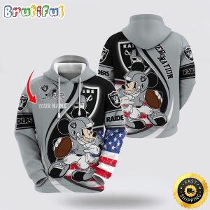 Personalized NFL Las Vegas Raiders Hoodie Mickey Mouse Flower 3D Print Hoodie