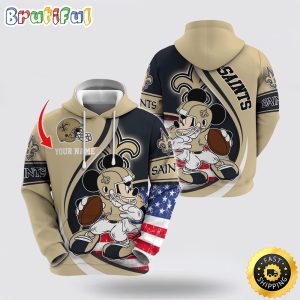 Personalized NFL New Orleans Saints Hoodie Mickey Mouse Flower 3D Print Hoodie