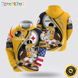 Personalized NFL Pittsburgh Steelers Hoodie Mickey Mouse Flower 3D Print Hoodie