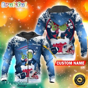 New England Patriots NFL Christmas Grinch in Chimney 3D Hoodie Pullover Prints Custom Name