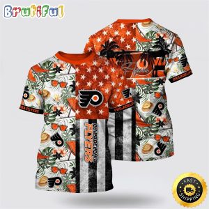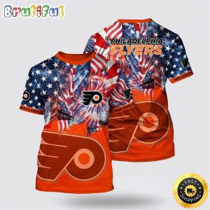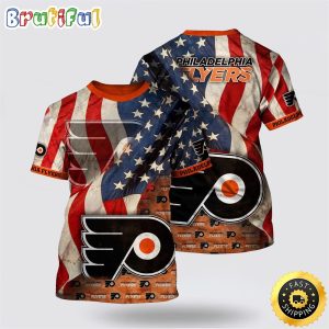 NHL Philadelphia Flyers All Over Print T Shirt With American Flag Pattern Summer T Shirt