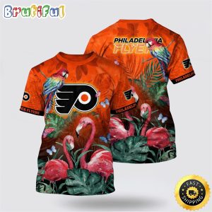 NHL Philadelphia Flyers All Over Print T Shirt Tropical Parrot And Flamingo Motifs Summer T Shirt