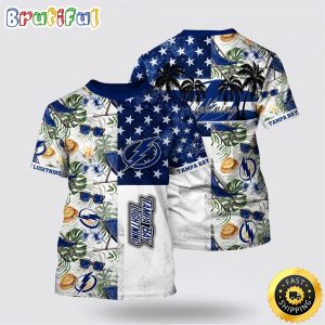 NHL Tampa Bay Lightning All Over Print T Shirt With American Flag Pattern Summer T Shirt