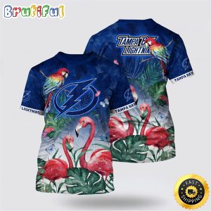 NHL Tampa Bay Lightning All Over Print T Shirt Tropical Parrot And Flamingo Motifs Summer T Shirt