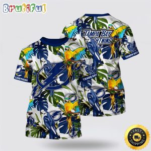 NHL Tampa Bay Lightning All Over Print T Shirt Tropical Parrot Pattern Summer T Shirt