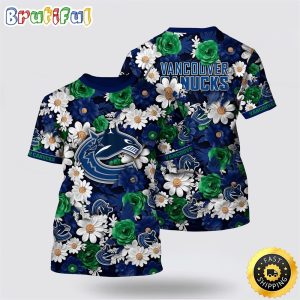 NHL Vancouver Canucks All Over Print T Shirt Tropical Begonia Flower Pattern Summer T Shirt
