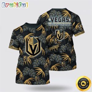 NHL Vegas Golden Knights All Over Print T Shirt Tropical Leaf Pattern Summer T Shirt