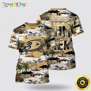 NHL Anaheim Ducks All Over Print T Shirt Tropical Desert Island Motif Summer T Shirt