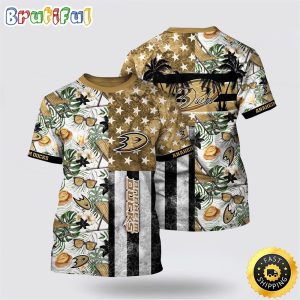NHL Anaheim Ducks All Over Print T Shirt Tropical Leaf Pattern Summer T Shirt