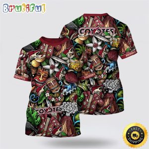 NHL Arizona Coyotes All Over Print T Shirt Tropical Tiki Pattern Summer T Shirt