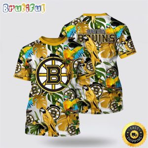 NHL Boston Bruins All Over Print T Shirt Tropical Motifs Summer T Shirt
