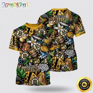 NHL Boston Bruins All Over Print T Shirt Tropical Tiki Pattern Summer T Shirt