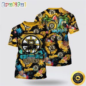 NHL Boston Bruins All Over Print T Shirt With Tropical Fruits Summer T Shirt