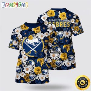 NHL Buffalo Sabres All Over Print T Shirt Tropical Begonia Flower Pattern Summer T Shirt