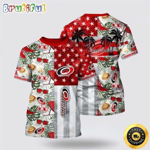 NHL Carolina Hurricanes All Over Print T Shirt With American Flag Pattern Summer T Shirt