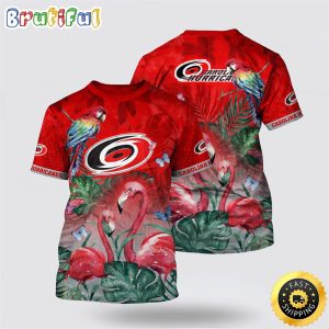 NHL Carolina Hurricanes All Over Print T Shirt Tropical Flamingo Pattern Summer T Shirt