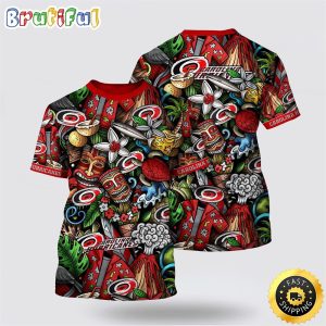 NHL Carolina Hurricanes All Over Print T Shirt Tropical Tiki Pattern Summer T Shirt