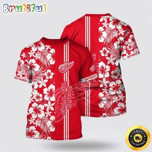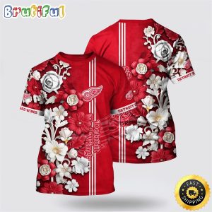 NHL Detroit Red Wings All Over Print T Shirt Tropical Begonia Flower Pattern Summer T Shirt