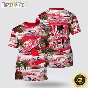 NHL Detroit Red Wings All Over Print T Shirt Tropical Desert Island Motif Summer T Shirt