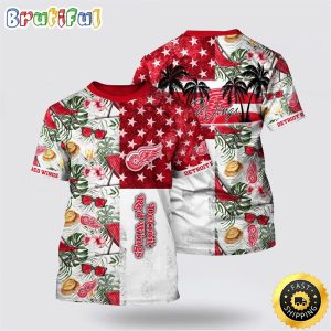 NHL Detroit Red Wings All Over Print T Shirt Tropical Motifs Summer T Shirt