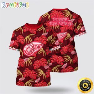 NHL Detroit Red Wings All Over Print T Shirt Tropical Leaf Pattern Summer T Shirt