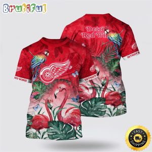 NHL Detroit Red Wings All Over Print T Shirt Tropical Flamingo Pattern Summer T Shirt