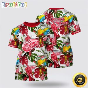NHL Detroit Red Wings All Over Print T Shirt Tropical Parrot Pattern Summer T Shirt