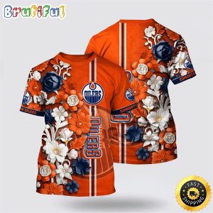 NHL Edmonton Oilers All Over Print T Shirt Tropical Hepatica Floral Pattern Summer T Shirt