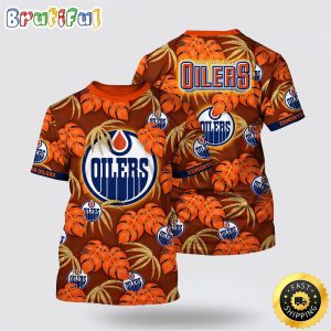 NHL Edmonton Oilers All Over Print T Shirt Tropical Motifs Summer T Shirt