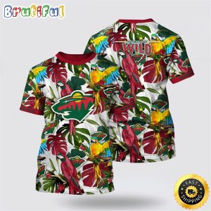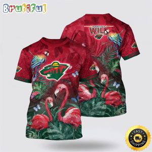 NHL Minnesota Wild All Over Print T Shirt Tropical Parrot And Flamingo Motifs Summer T Shirt