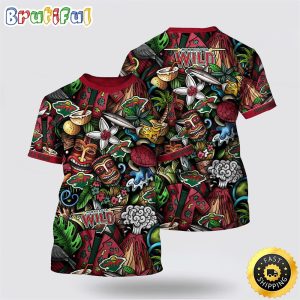 NHL Minnesota Wild All Over Print T Shirt Tropical Tiki Pattern Summer T Shirt