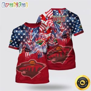 NHL Minnesota Wild All Over Print T Shirt With American Independence Day Pattern Summer T Shirt