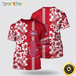 NHL Montreal Canadiens All Over Print T Shirt Tropical Begonia Flower Pattern Summer T Shirt