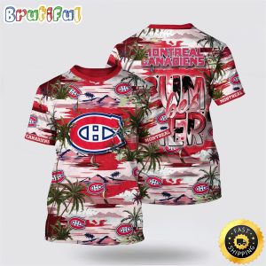 NHL Montreal Canadiens All Over Print T Shirt Tropical Desert Island Motif Summer T Shirt