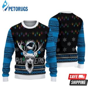 Carolina Panthers Big Christmas Reindeer Ugly Christmas Sweaters