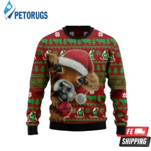 Cow With Santa Hat And Christmas Lights Ugly Christmas Sweaters