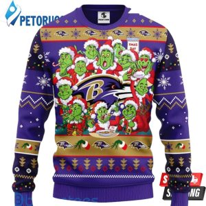 Nfl Baltimore Ravens Multi Grinch Face Ugly Christmas Sweaters