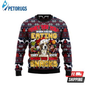 Beagle They Know When You Have Snacks Ugly Christmas Sweaters