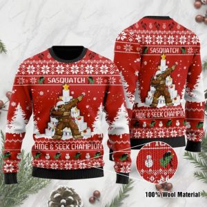 Bigfoot Hide And Seek Word Champion Dab Christmas Ugly Sweater