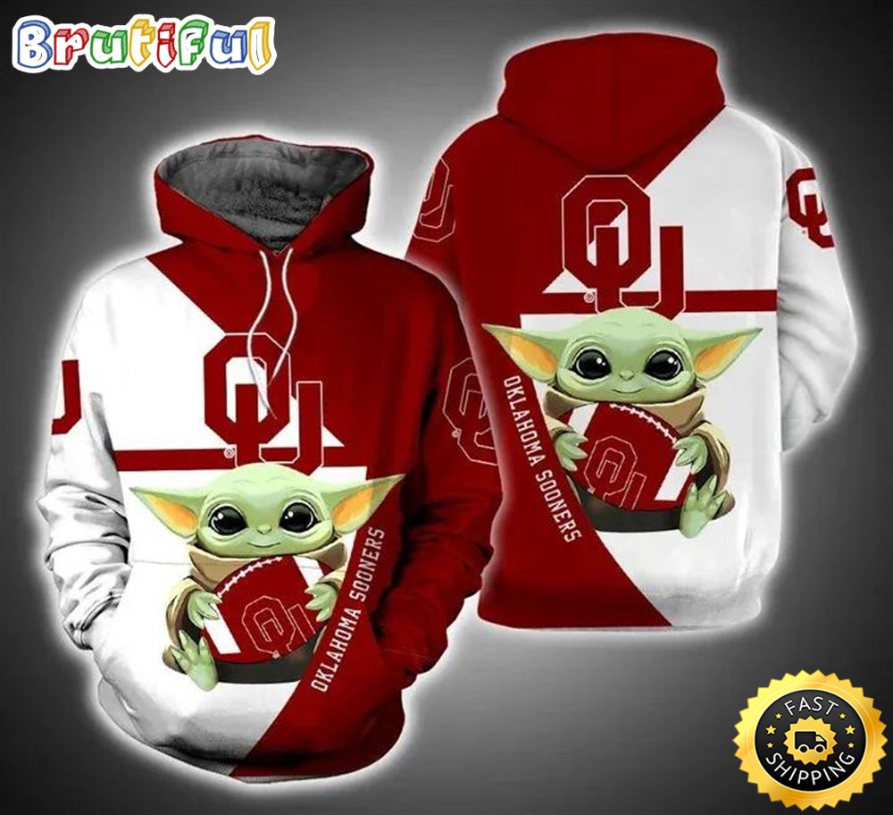 Baby Yoda Hug Ball Oklahoma Sooners 3d Hoodie Cool Oklahoma Sooners Gifts