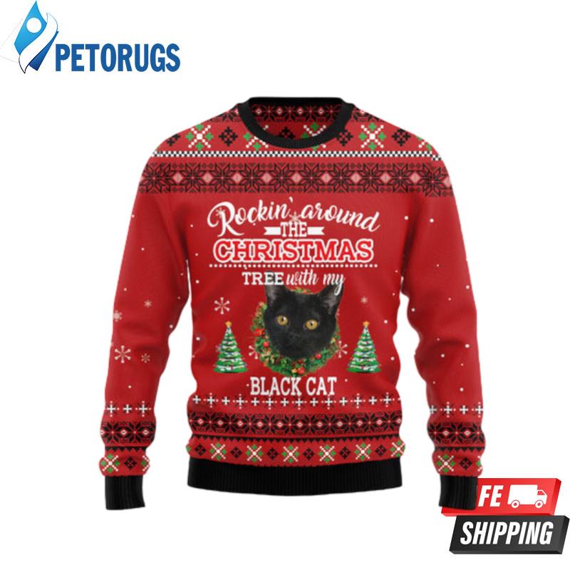 Black Cat Rockin’ Ugly Christmas Sweaters