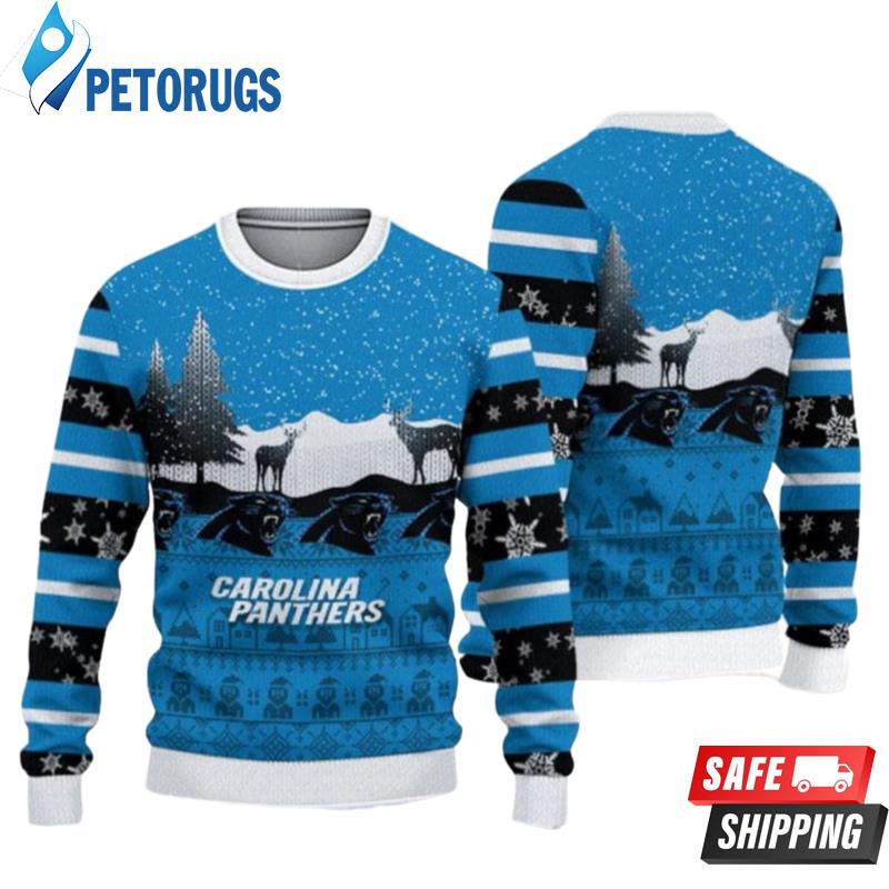 Carolina Panthers Christmas Reindeers Pattern Ugly Christmas Sweaters