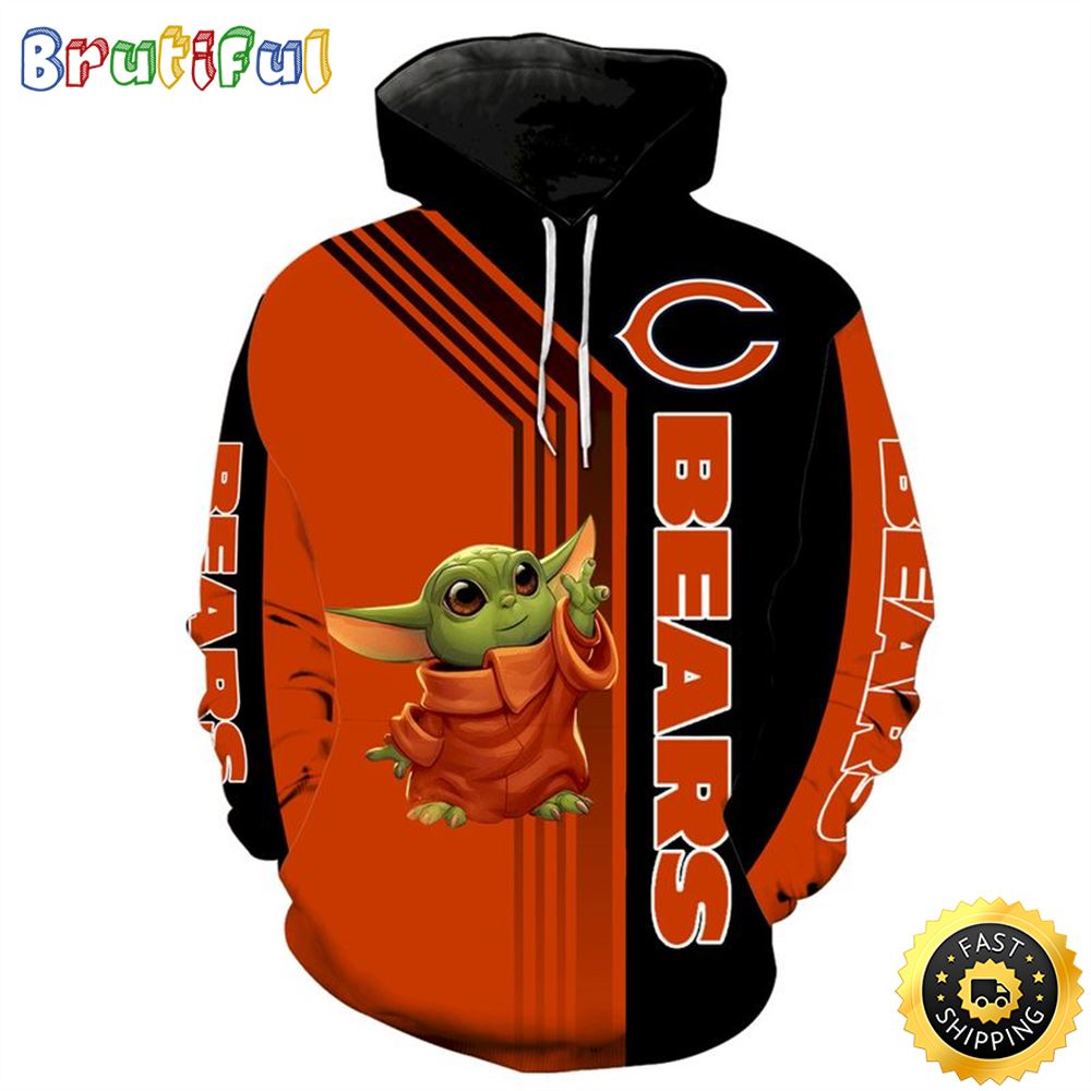 Chicago Bears Baby Yoda 3d Hoodie All Over Print Chicago Bears Gifts For Men