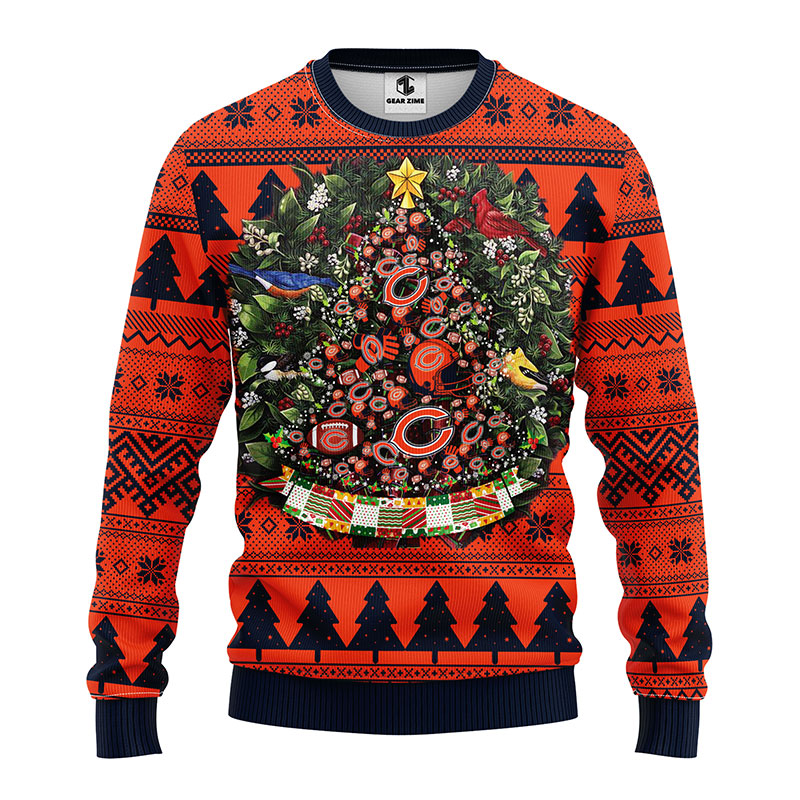 Chicago Bears Football Pine Tree Shape Christmas Ugly Sweater
