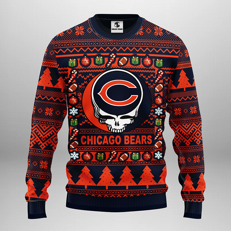 Chicago Bears Grateful Dead NFL Ugly Christmas Fleece Sweater – Chicago Bears Ugly Christmas Sweater