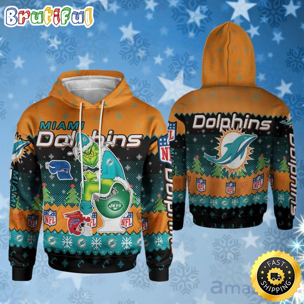 Christmas Miami Dolphins Grinch In Toilet Christmas 3D Pullover Hoodie